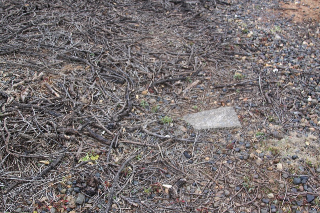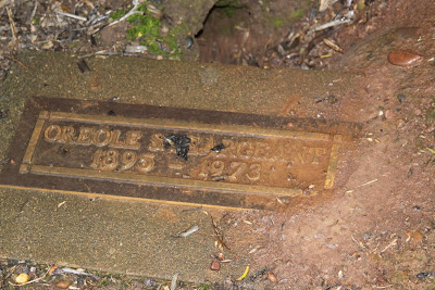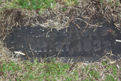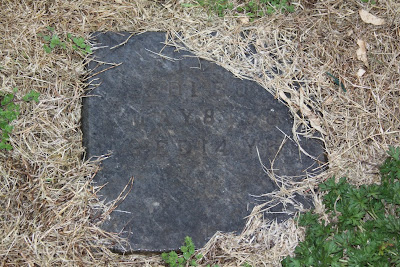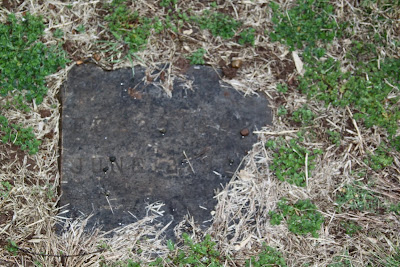 Yes, this a very old stone that is now illegible. It once had paint on it but that has faded. Why is this where debris is collected? Are the remains of anyone else under the rubbish?